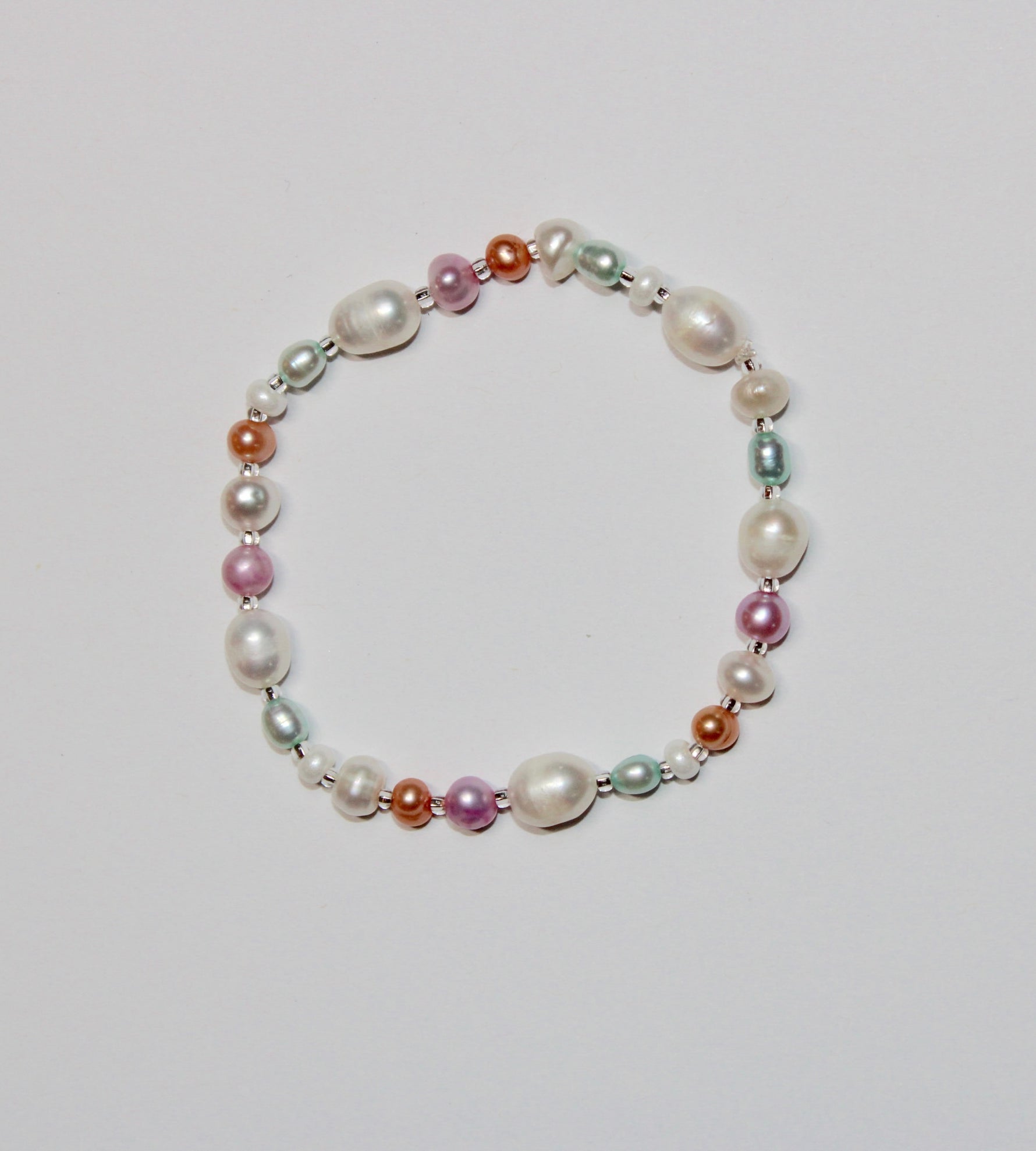 real freshwater pearls: turquoise, pink, white, and orange