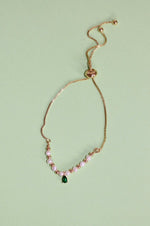 Adjustable real 18k gold plated bracelet with real Keshi pearls and green cubic zirconia