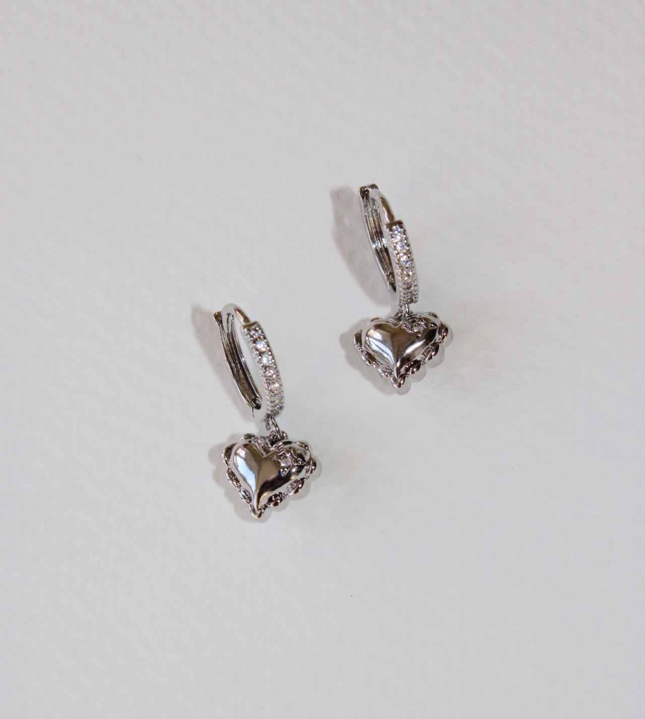 Stainless steel in silver. Bubble heart design, with cubic zirconia star. Cubic zirconia and stainless steel huggie.