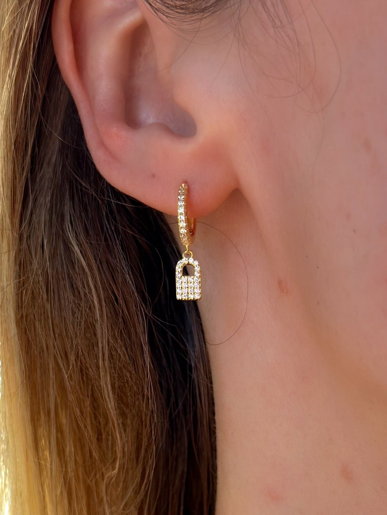 Lock & Key Huggies - Gold
